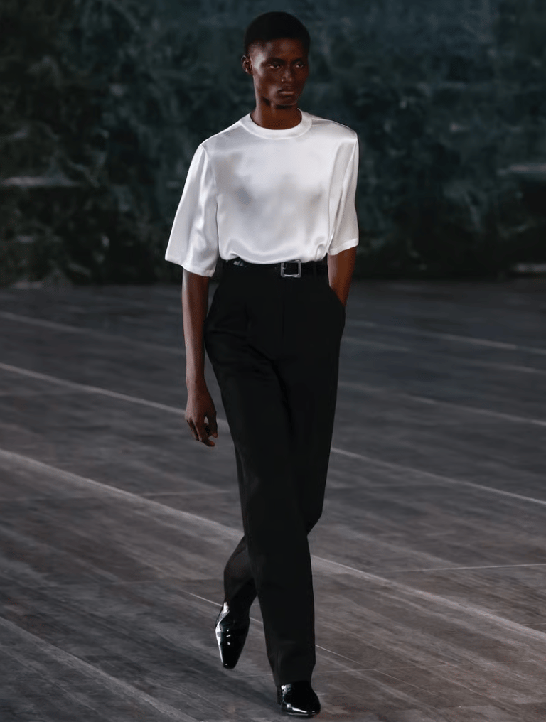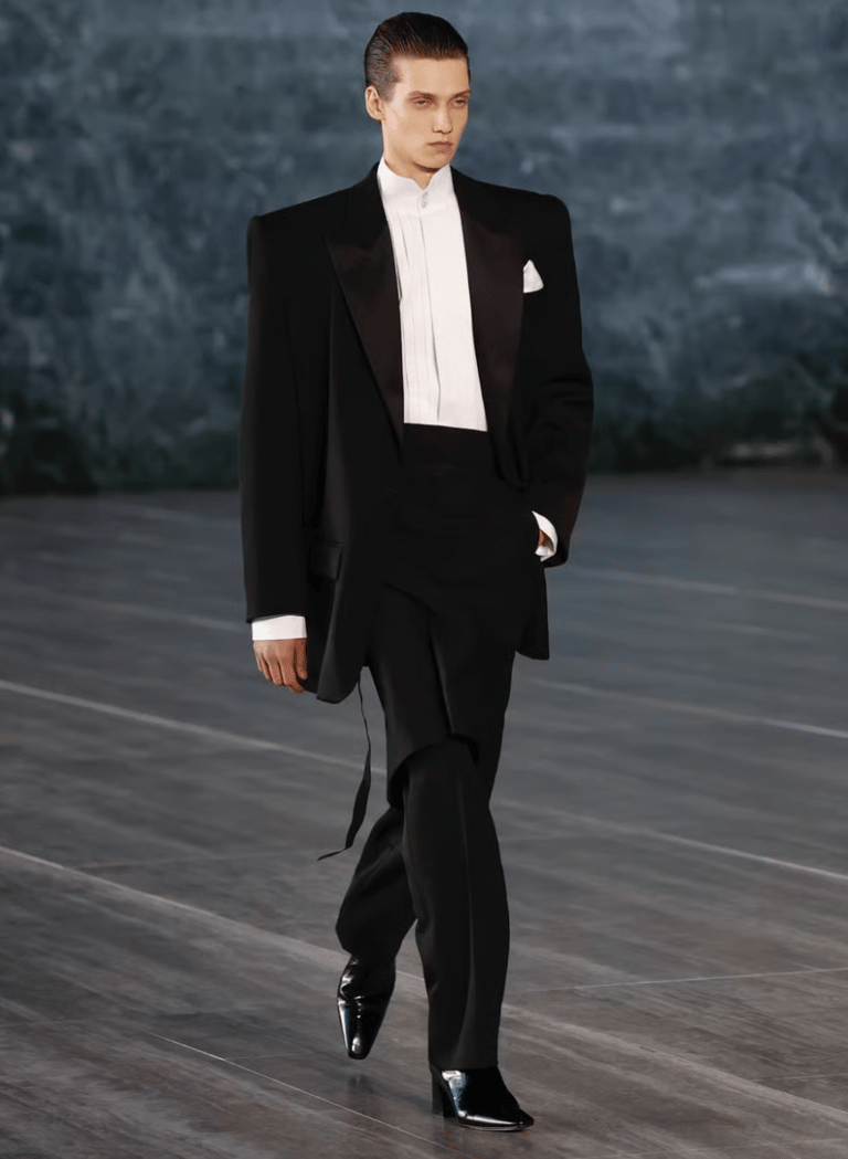 An honorable mention was made to the myrid sublime tuxedos that opened and closed the show followed by shouldered and capacious line of his jackets and slim trousers. Not intentionally, they pretty gave a bit of Lydia Tar vibe, coincidentally it was set and filmed in Berlin.