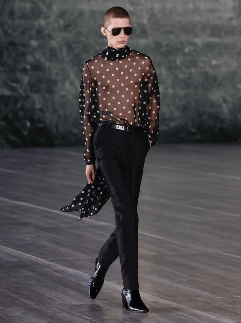 This fashion show has to be the most diverse and significant to the Yves Saint Laurent because men wore outfits that were feminine to the fashion, Mostly we have seen women wearing musculine outfits in the Ysl but this time it was very different to the other runways.